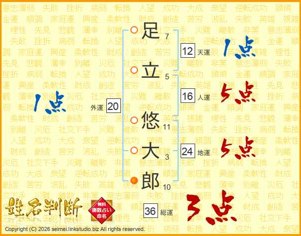 足(7画)立(5画) 悠(11画)大(3画)郎(10画)