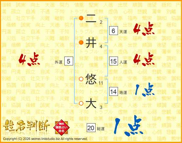 二井悠大さんの人運は15画の4点!