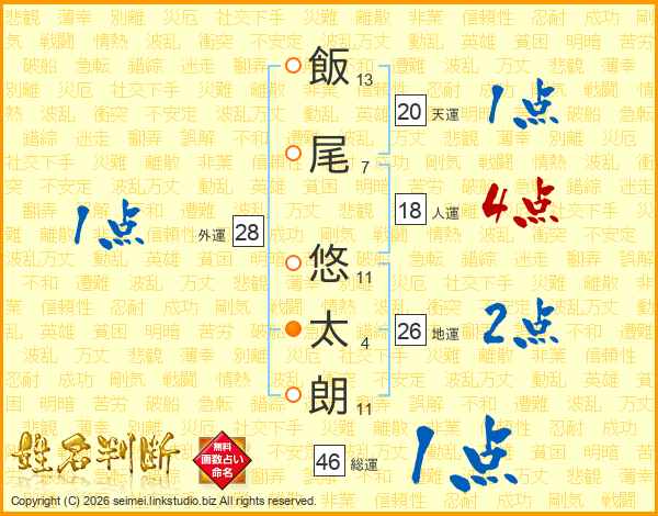 飯尾悠太朗さんの総運は46画の1点!