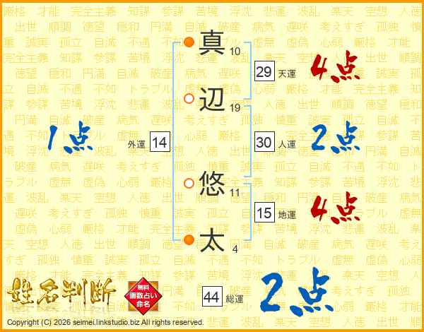 真辺悠太さんの総運は44画の2点!