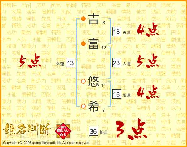 吉富悠希さんの天運は18画の4点
