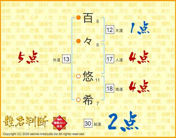 百(6画)々(6画) 悠(11画)希(7画)