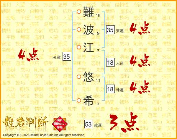 難(19画)波(9画)江(7画) 悠(11画)希(7画)