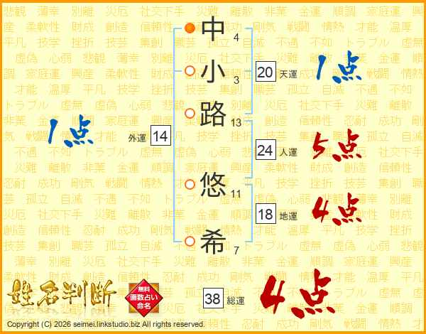 中(4画)小(3画)路(13画) 悠(11画)希(7画)