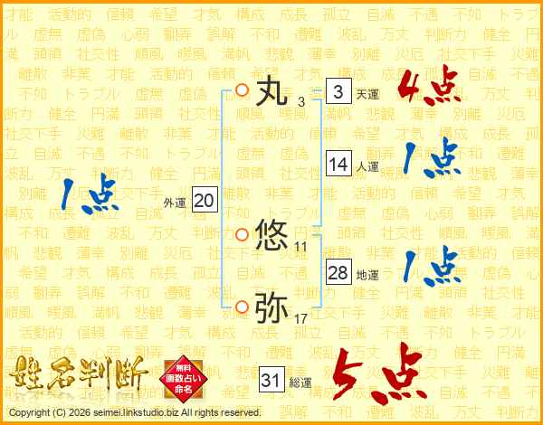 丸悠弥さんの総運は31画の5点!