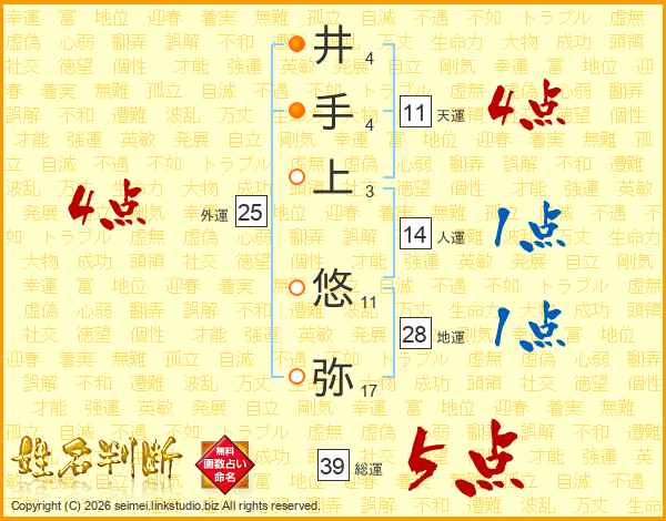 井手上悠弥さんの総運は39画の5点!