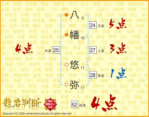 八幡悠弥さんの総運は52画の4点!