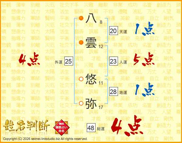 八雲悠弥さんの人運は23画の5点!