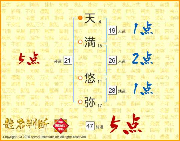 天満悠弥さんの総運は47画の5点!