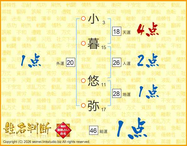 小(3画)暮(15画) 悠(11画)弥(17画)