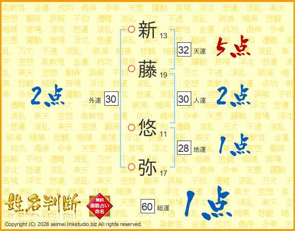 新藤悠弥さんの総運は60画の1点!