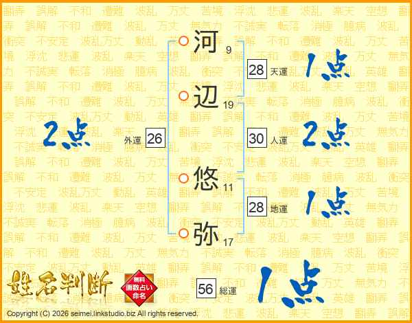 河辺悠弥さんの総運は56画の1点!
