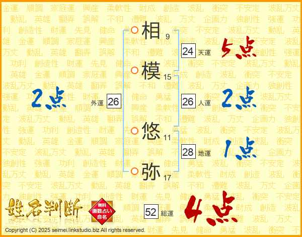 企画力 独創性 強運 功利 創造性 財運 先見 健命 勇猛
