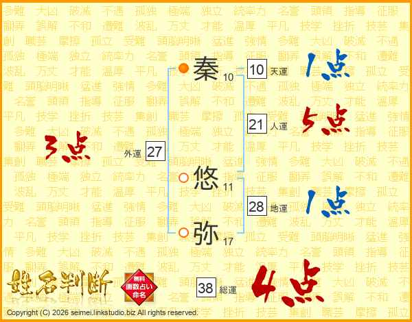 秦悠弥さんの総運は38画の4点!