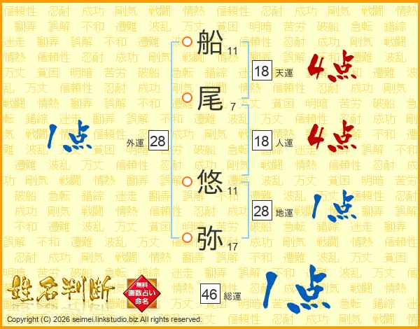 船尾悠弥さんの天運は18画の4点!