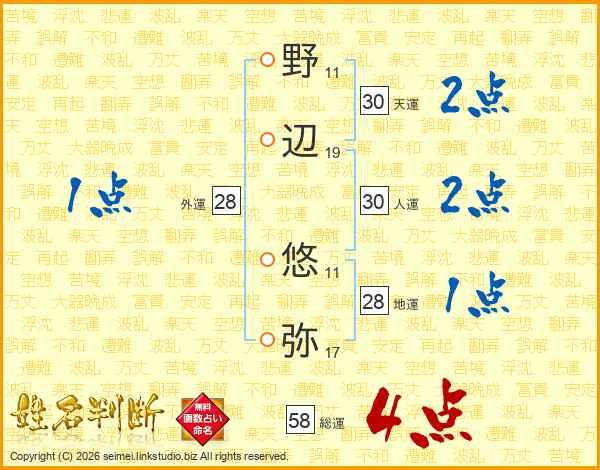 野辺悠弥さんの天運は30画の2点!