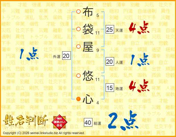 布袋屋悠心さんの総運は40画の2点!