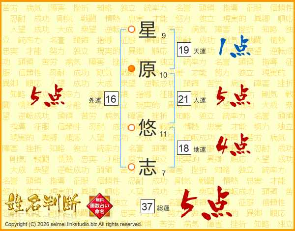 星原悠志さんの総運は37画の5点!