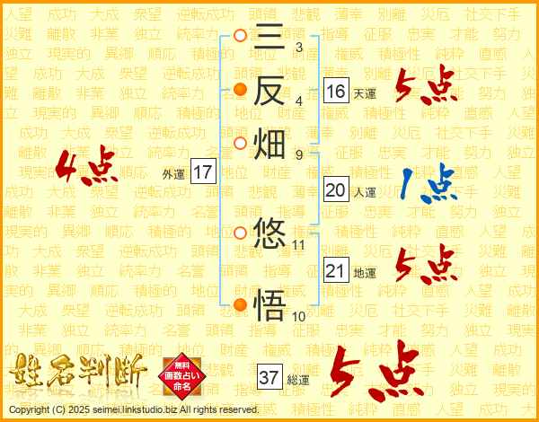 三反畑悠悟さんの総運は37画の5点!