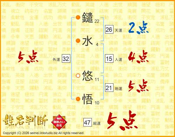 鑓水悠悟さんの総運は47画の5点!