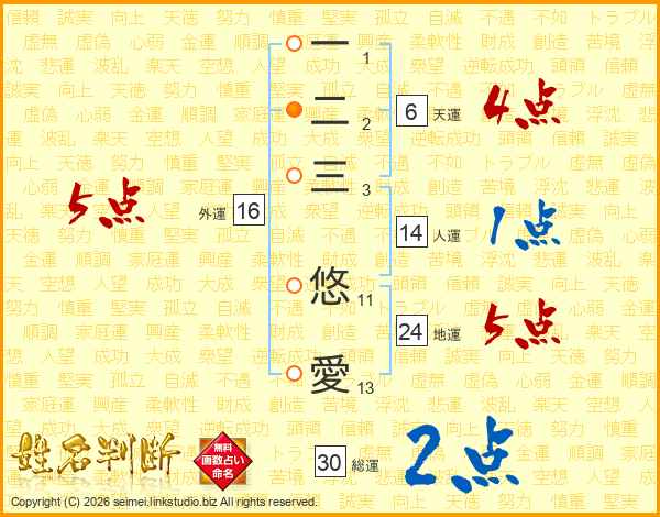 一二三悠愛さんの外運は16画の5点!