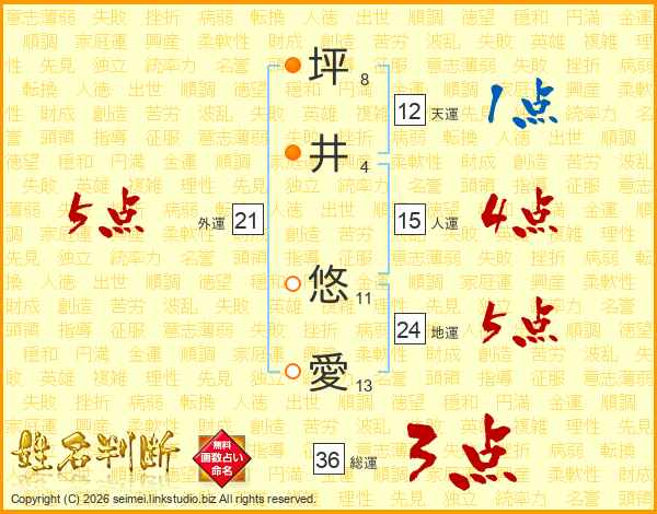 坪(8画)井(4画) 悠(11画)愛(13画)