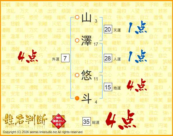 山澤悠斗さんの総運は35画の4点!