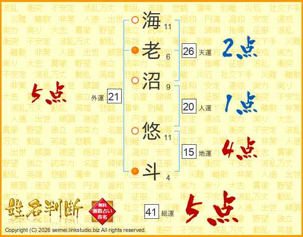 海老沼悠斗さんの総運は41画の5点!