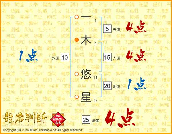 一木悠星さんの総運は25画の4点!