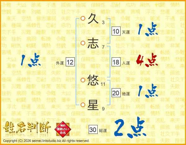 久志悠星さんの総運は30画の2点!