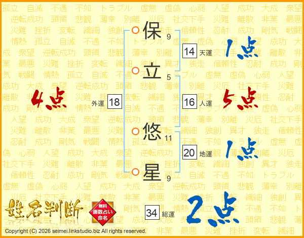 保(9画)立(5画) 悠(11画)星(9画)