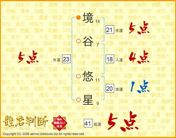 境(14画)谷(7画) 悠(11画)星(9画)