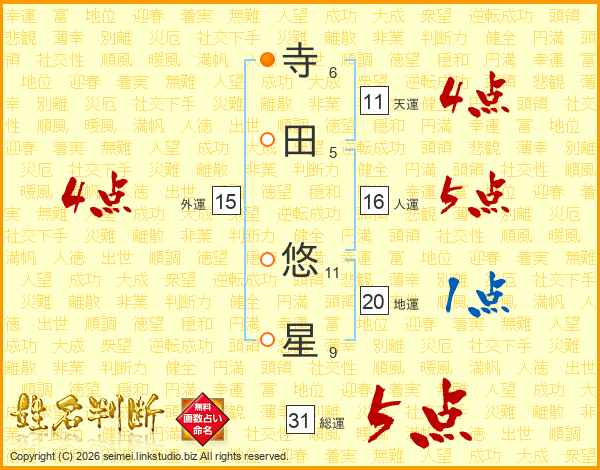 寺(6画)田(5画) 悠(11画)星(9画)