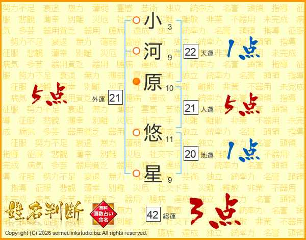 小河原悠星さんの人運は21画の5点!