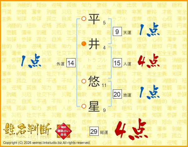 平井悠星さんの総運は29画の4点!