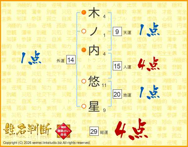 木ノ内悠星さんの総運は29画の4点!