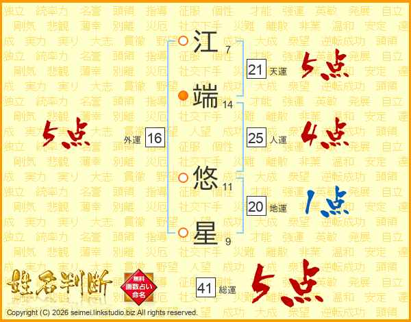 江端悠星さんの総運は41画の5点!
