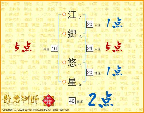 江郷悠星さんの人運は24画の5点!