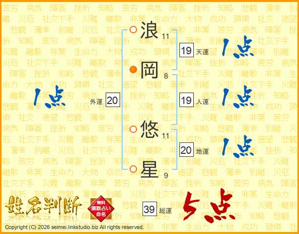 浪岡悠星さんの総運は39画の5点!