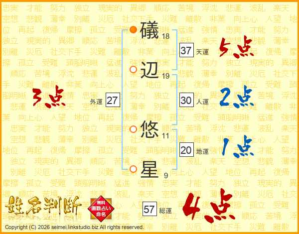 礒辺悠星さんの総運は57画の4点!