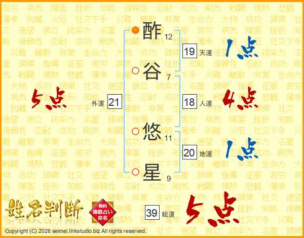 酢谷悠星さんの総運は39画の5点!