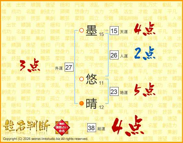 墨悠晴さんの総運は38画の4点!
