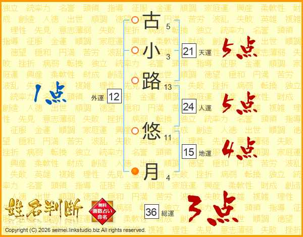 古小路悠月さんの人運は24画の5点!