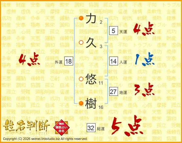 力久悠樹さんの総運は32画の5点!