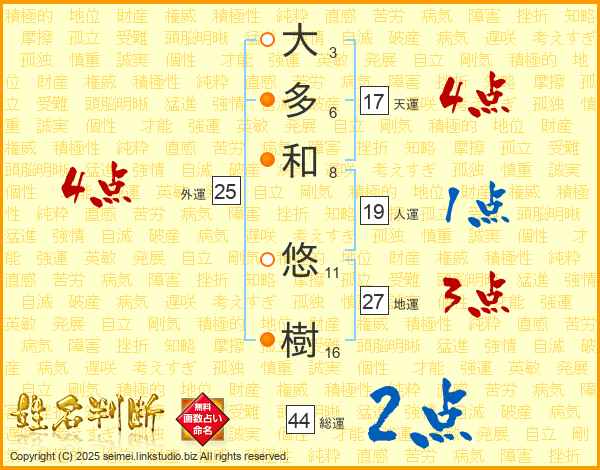 大(3画)多(6画)和(8画) 悠(11画)樹(16画)
