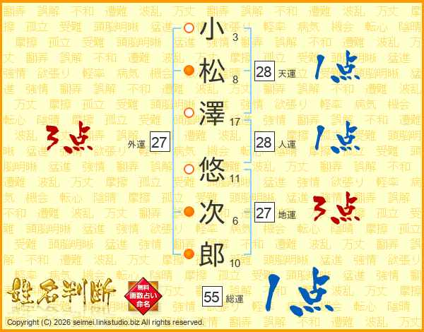 小松澤悠次郎さんの人運は28画の1点!
