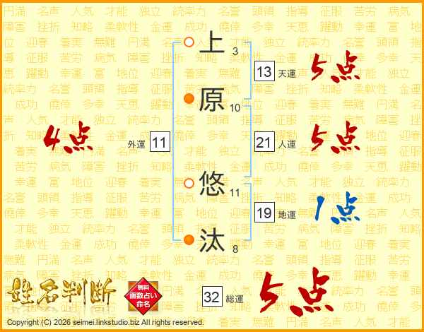 上原悠汰さんの総運は32画の5点!
