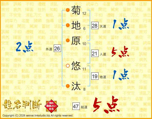 菊(12画)地(6画)原(10画) 悠(11画)汰(8画)