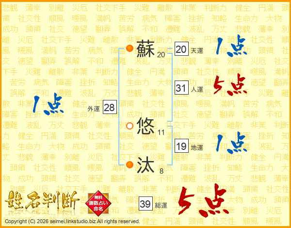 蘇悠汰さんの総運は39画の5点!
