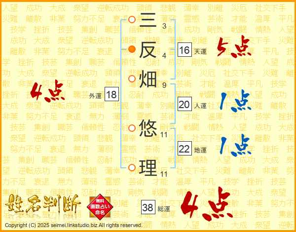 三(3画)反(4画)畑(9画) 悠(11画)理(11画)